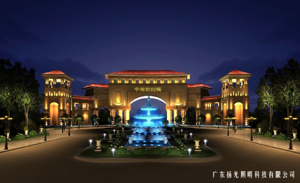整體燈光體現縱橫的(de)布局,縱(zòng)軸以水為載體(tǐ),冷色光為主。橫軸以建築為載體,暖黃色的燈光,從塔樓兩側向中心延伸(shēn)過度,層次分明的燈光(guāng)體現大門的弧形結構,寄出(chū)標(biāo)誌,道路配以歐式庭院燈,整體和諧大氣,溫馨浪漫。