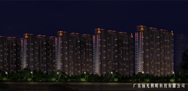 在一期住宅樓(lóu)區域,首先打亮八角燈,其次在建築頂部用洗牆燈,渲(xuàn)染出建築最頂部(bù)塔樓部分,使建(jiàn)築整體有主有次,呈現別樣的韻味,關(guān)於室內部分的燈光,不在設計統計範圍,可根據業主(zhǔ),住戶,自由選擇在夜間開啟,渲染小區溫馨舒適的氣息。