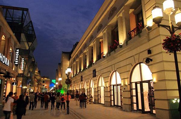 沿(yán)街建築展示立(lì)麵,營造清晰明亮、華麗尊貴、溫馨浪漫的夜景燈光氛圍(wéi)。照明偏向對外商業氣氛的表達;燈光對(duì)外具有(yǒu)吸引性。