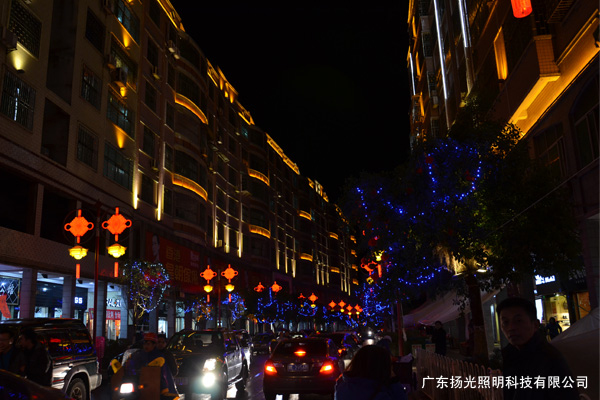 府前街夜景工程項目位於湖南(nán)宜章,因為是整條街的亮化,包括商業建築(zhù),政府大樓,人行道(dào),天橋,園林,廣場,酒店等,項目燈具數量種類多,又因臨近春節材料采購訂製難度大;街道長,並且湖南的天氣比較冷,凍雨天氣多(duō);時間緊,施工時間隻(zhī)有一(yī)個月(yuè),這對整個公司(sī)的施工是一個大的(de)考驗。